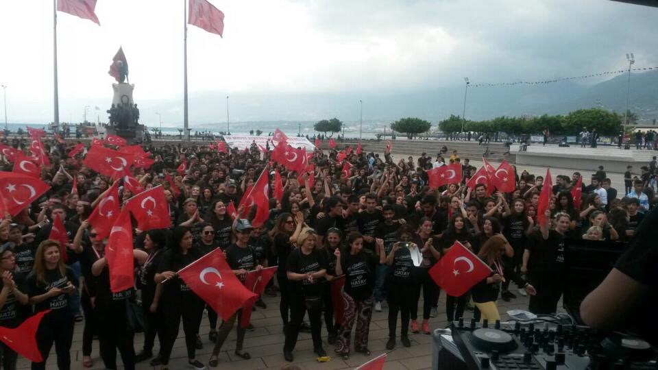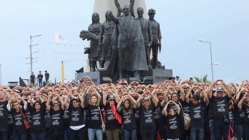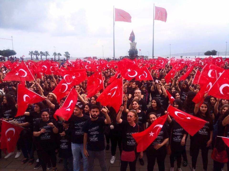 Hatay Büyükşehir Belediyesi’nin destekleri ve İskenderun Genç Sarı Zeybekler Komitesinin girişimleri ile gönüllü 1919 kişi bir araya geldi. Atatürk Anıt alanında toplanan gönüllülere özel baskılı tişörtlerin yanı sıra Türk Bayrakları verildi. Saat 14.00’ten itibaren alandaki yerlerini alan gençler, anıt alanında şarkılar söyleyerek ve halaylar çekerek, görevliler eşliğinde hep birlikte imzayı oluşturmaya çalıştılar.