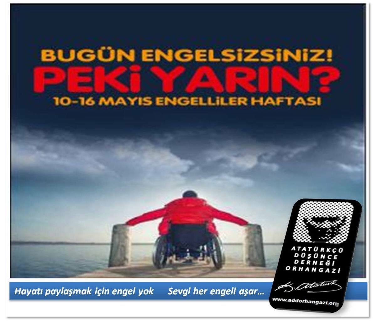 Engelliler haftası dolaysıyla Atatürkçü Düşünce Derneği Orhangazi Şubesi Başkanı İsmail Saidoğlu, yazılı bir mesaj yayınlayarak bu anlamlı günleri kutladı. Saidoğlu açıklamasında “Engelli vatandaşların sadece böyle günlerde hatırlanmaması gerektiğinin altını çizmesinin ardından haklarının da yalnızca yasa çıkarıp kâğıt üzerinde savunmanın yeterli olmayacağını ifade etti.